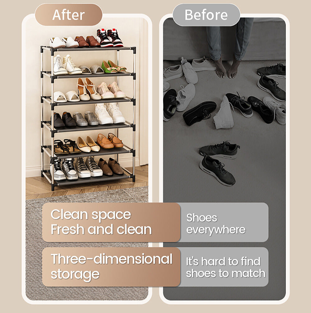 Tired of tripping over scattered shoes? Our Shoe Storage Rack is the solution you need to tame that messy shoe area. With its sturdy construction and ample space, this rack effortlessly organizes your footwear collection, transforming chaos into order. Say goodbye to cluttered floors and hello to a tidy, inviting space with our efficient storage solution